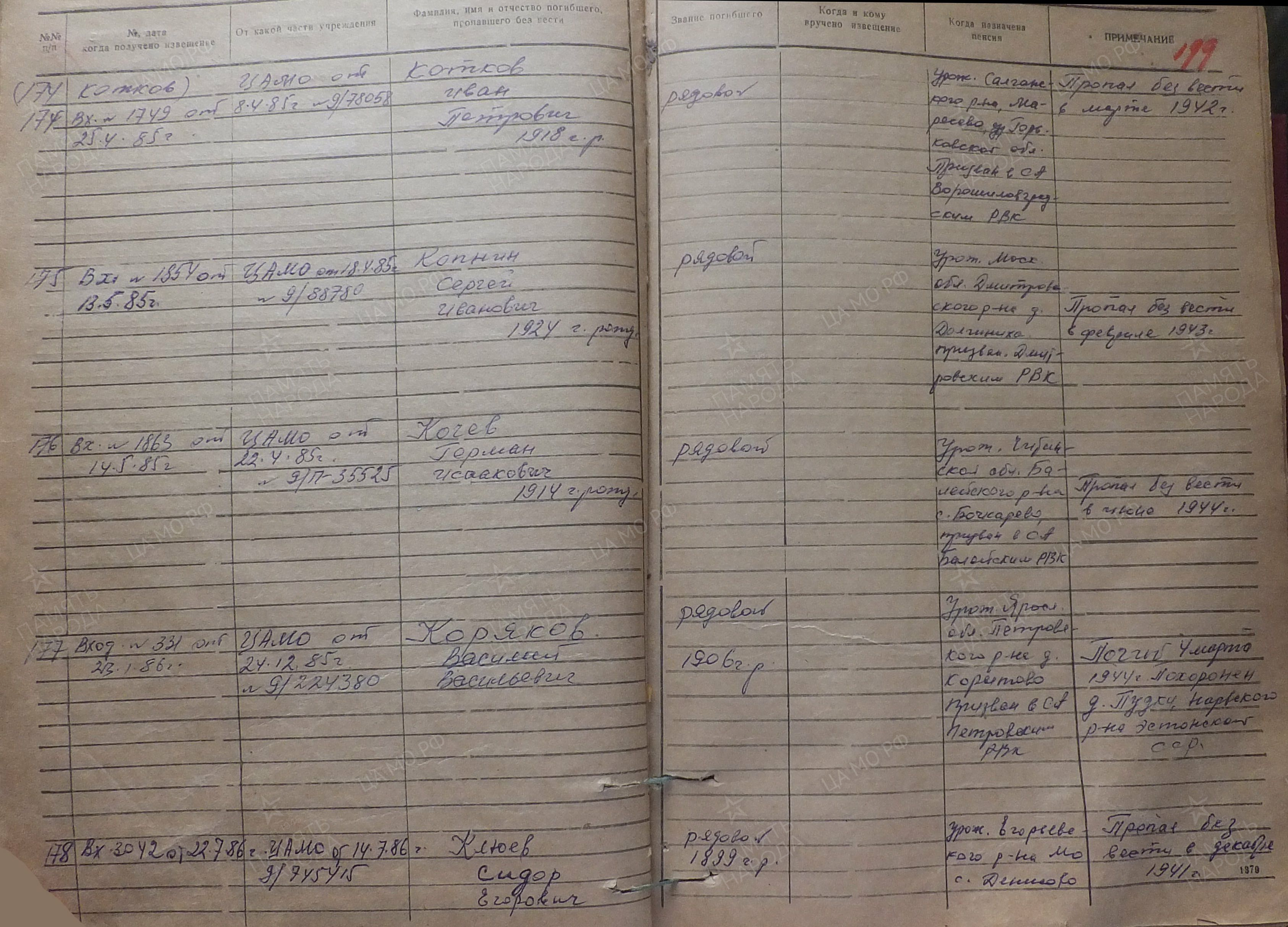 Место рождения Ярославская обл., Петровский р-н, д. Корытово